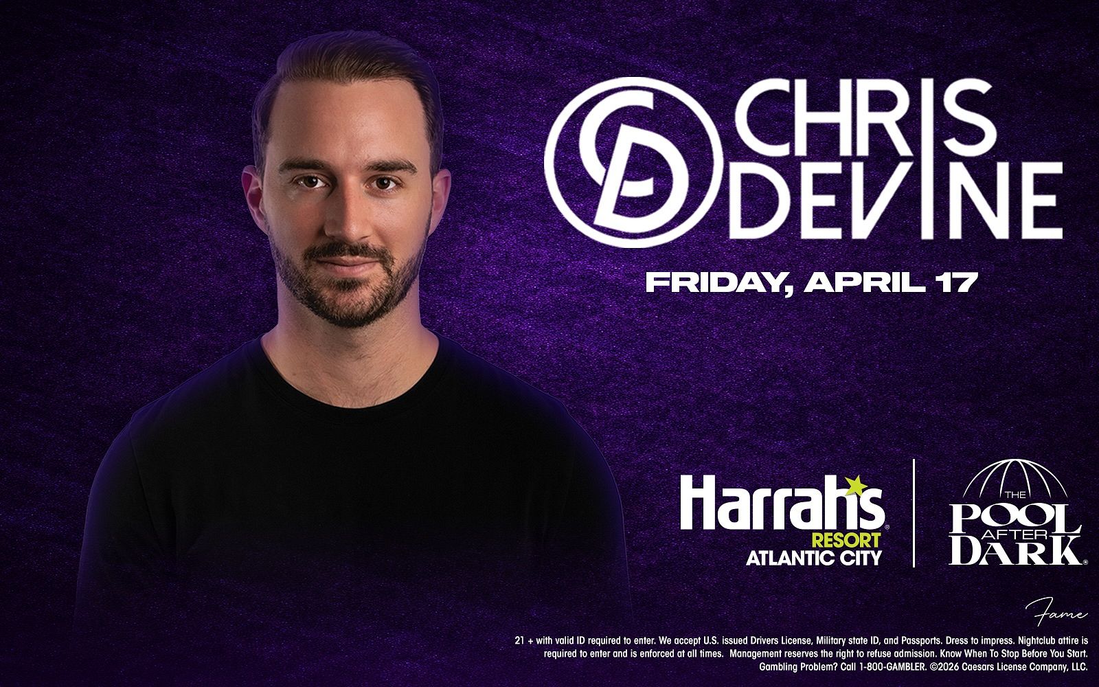 Dive into the ultimate Atlantic City nightlife experience at The Pool After Dark with music by CHRIS DEVINE, located inside Harrah's Resort!
