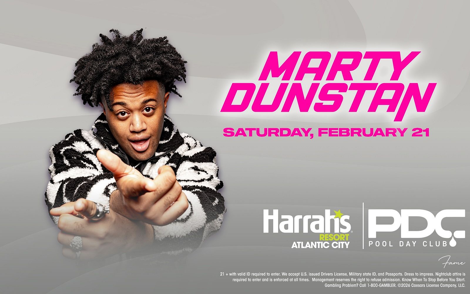 On Saturday daytime, The Pool Day Club at Harrah's Resort Atlantic City invites you to a vibrant day party with music by MARTY DUNSTAN! Join us for an unforgettable pool party experience at Harrah's Resort, where the sun, beats, and good vibes collide.