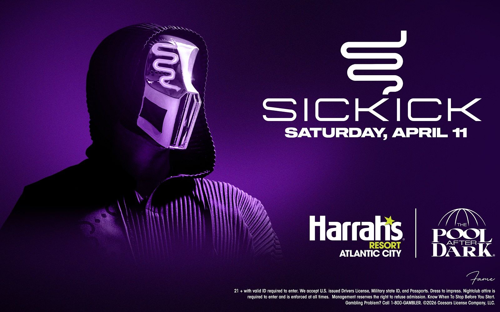 On Saturday night, April 11th, the energy in Atlantic City shifts as the enigmatic, masked sensation Sickick takes over the decks at The Pool After Dark. Known for his hauntingly addictive "Sickhop" sound—a seamless blend of dark EDM, R&B, and hip-hop—Sickick is bringing his viral remixes and high-octane energy to the most iconic pool party on the East Coast.