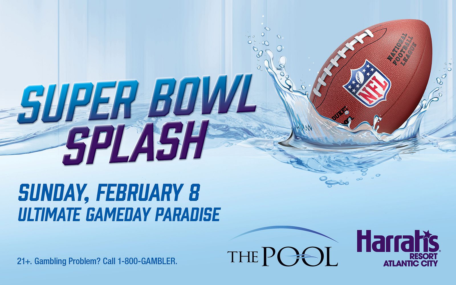 Atlantic City's top daylife and nightlife destination is making a splash on gameday with the city's hottest Super Bowl LX event — Sunday Splash. With over 40 screens, there's no better way to experience the face-off between the AFC and NFC Champions than where it's always 82 degrees. Fans can score general admission tickets for $35.60 plus taxes, which includes a tailgate-themed buffet, games, prizes and giveaways. VIP tables and food packages also available for reservations.